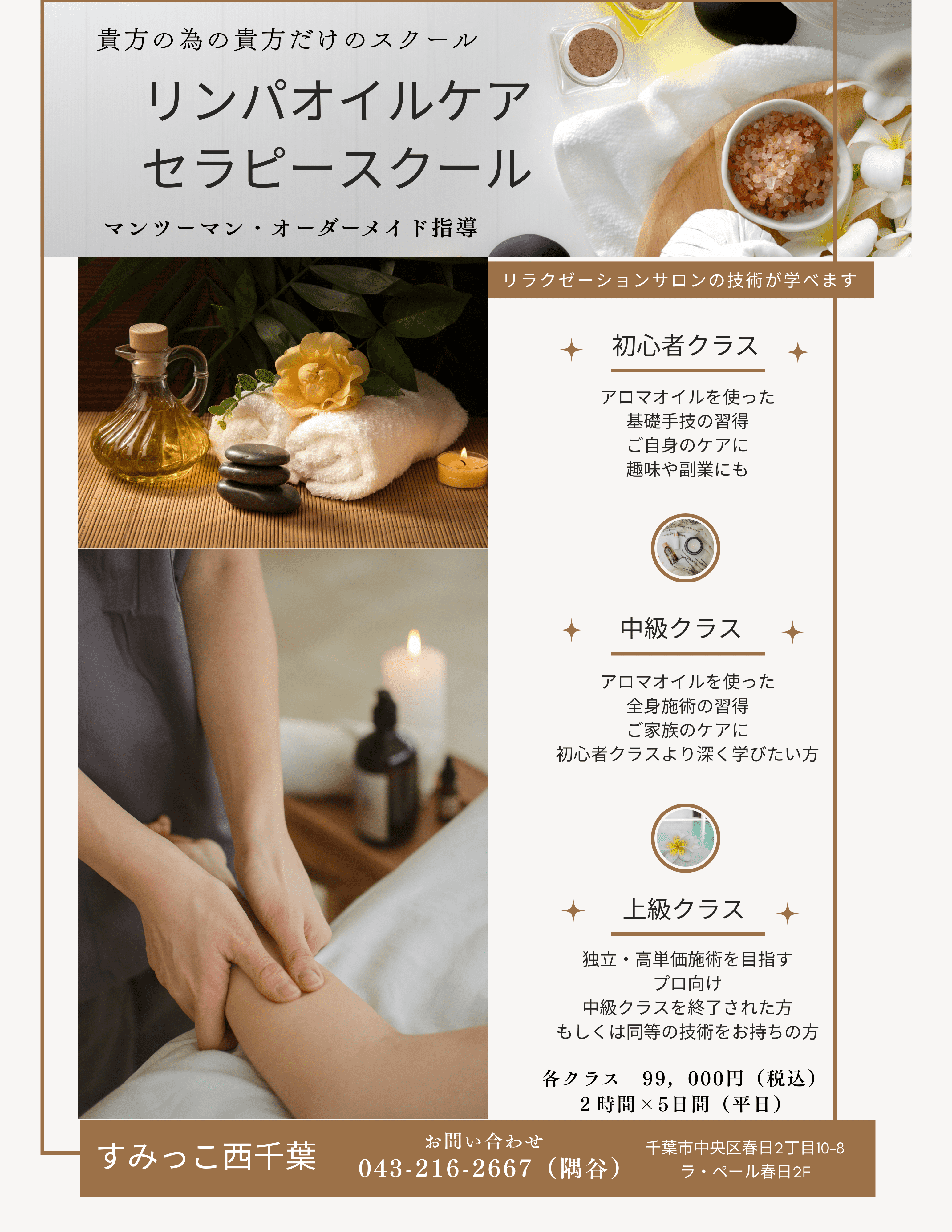 すみっこでは、心と身体を癒すオイルマッサージの技術を、